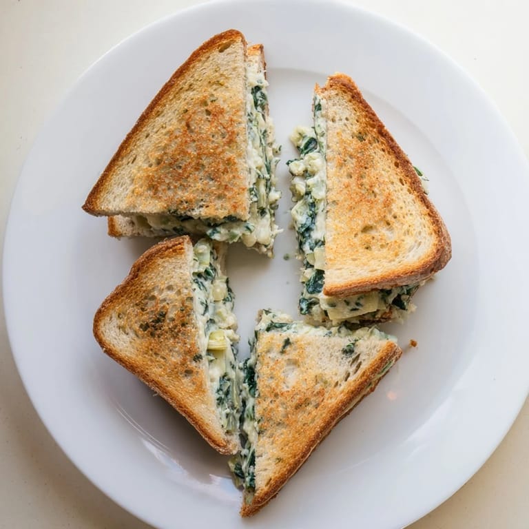Save I discovered this recipe during a rainy Sunday when I was craving something decadent but had only basic sandwich supplies. The combination of spinach artichoke dip flavors with grilled cheese seemed obvious in hindsight, but it felt like pure genius in that moment. My kitchen smelled incredible as the garlic and cheeses melded together. Now it is my go to comfort food whenever I need something rich and satisfying.