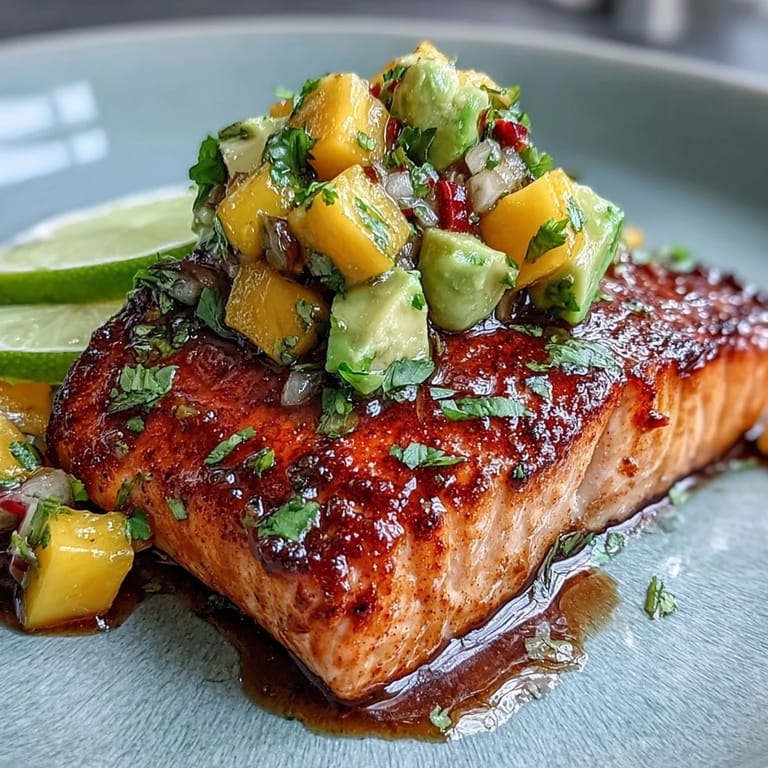 I remember cooking this for a friend’s birthday dinner when we promised we’d actually sit down and eat together—no phones. The kitchen was a gentle mess, avocado bits clinging to my fingertips and mango juice almost splashing onto someone’s shirt (almost!). We laughed about how salmon seems intimidating, but it’s surprisingly forgiving. That night, proofs of friendship came in seconds and thirds served. There was that quiet moment, right before everyone dug in, when the salsa seemed to glow atop the salmon, and conversation paused, just for a taste.