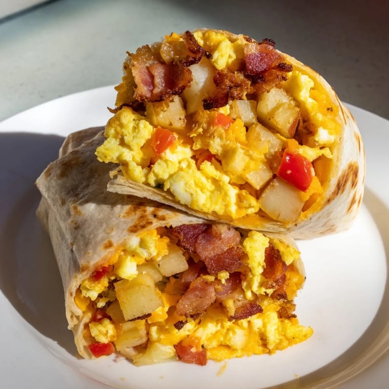 Save My roommate in college used to make these every Sunday morning while I slept in, and the smell of sizzling potatoes and bacon would eventually drag me out of bed. We'd sit cross-legged on the kitchen floor, eating steaming burritos with paper towels for napkins, watching cartoons and planning our week. Those messy Sunday mornings became something I looked forward to all week, and now this recipe lives in my permanent rotation for exactly that reason.