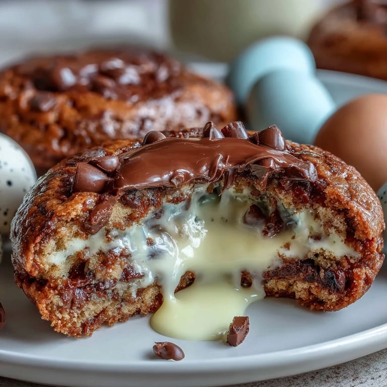 Save My sister texted me a photo of a Cadbury Creme Egg melting inside a warm chocolate chip cookie, and I immediately knew I had to figure out how to make that happen. There's something about the way that bright yellow center oozes out when you bite into the cookie that feels like opening a present, every single time. It's not fancy or complicated, but it strikes that perfect balance between nostalgic comfort and delightful surprise. I spent one rainy afternoon testing different wrapping techniques to make sure the egg stayed put during baking, and the payoff was absolutely worth it.