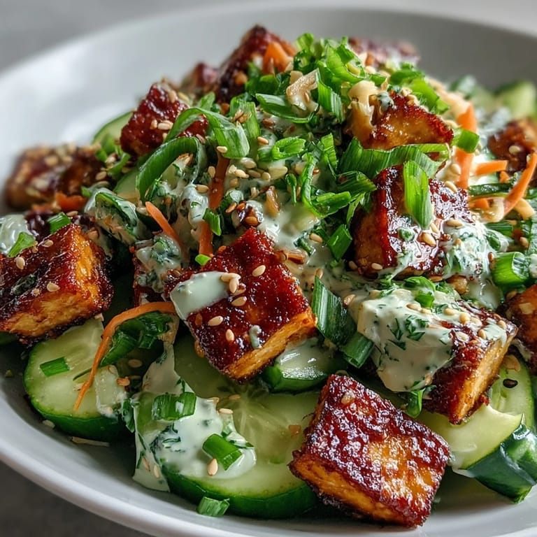 Save I made this on a Tuesday night when I was too tired to think, and it felt like a small gift to myself. The first bite, cold cucumber, creamy dressing, that crispy tofu, reminded me that taking care of yourself can be as simple as making something that tastes this good. Sometimes thats all you need.