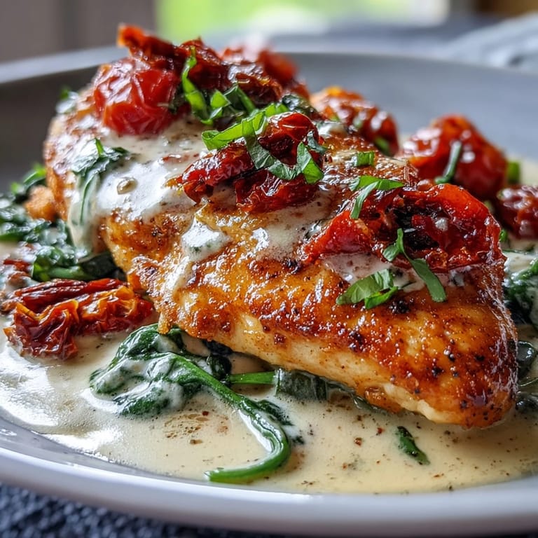The magic here is that nothing's trying too hard—the chicken stays tender because you're not fussing with it endlessly, the sauce comes together in minutes from just a handful of pantry staples, and somehow it all tastes like you've been cooking all day. The sun-dried tomatoes do most of the heavy lifting in terms of flavor, so you don't need a million ingredients or complicated techniques to feel like you've made something special.