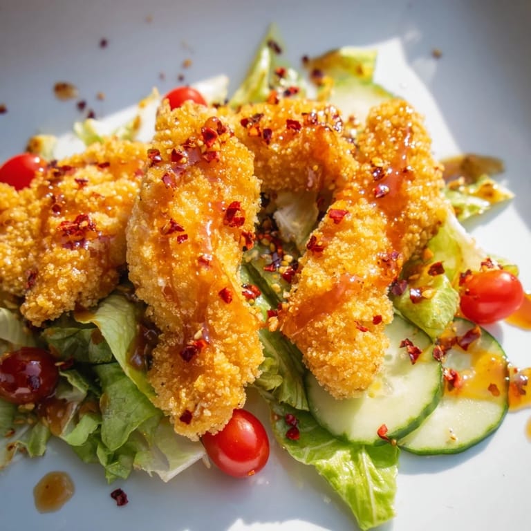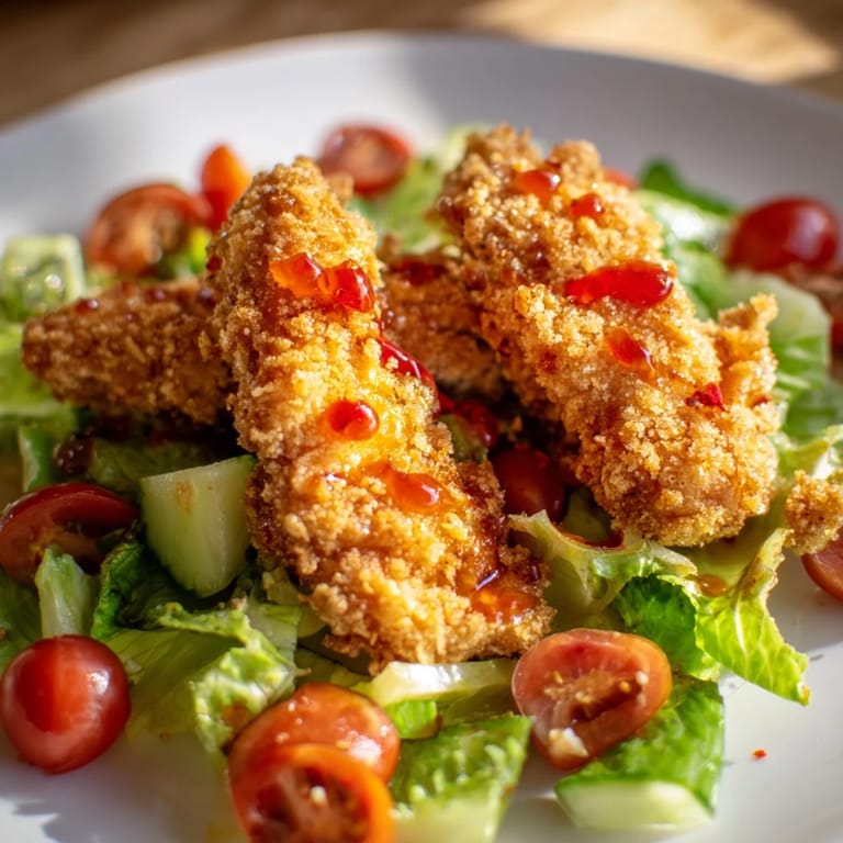 Save The first time I made this salad, my kitchen smelled like a state fair meets farmers market. That combination of frying chicken and fresh chopped greens somehow made everything feel right with the world. My roommate wandered in, drawn by the sizzling sounds, and ended up staying for dinner. Now it is the meal I make when I want something indulgent but still somehow virtuous.