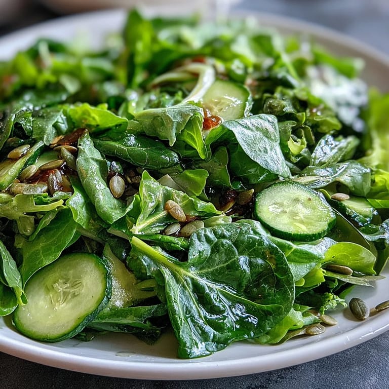 Save My neighbor stopped by on a sweltering afternoon with a bag of just-picked vegetables from her garden, and I realized I had nothing in my fridge that felt worthy of them. We ended up chopping together in her air-conditioned kitchen, and she kept insisting that the simplest salads are often the most memorable—just good greens, bright vegetables, and a vinaigrette you actually want to drink. That conversation changed how I approach salad-making, and this glowing green version has become my go-to proof that she was right.