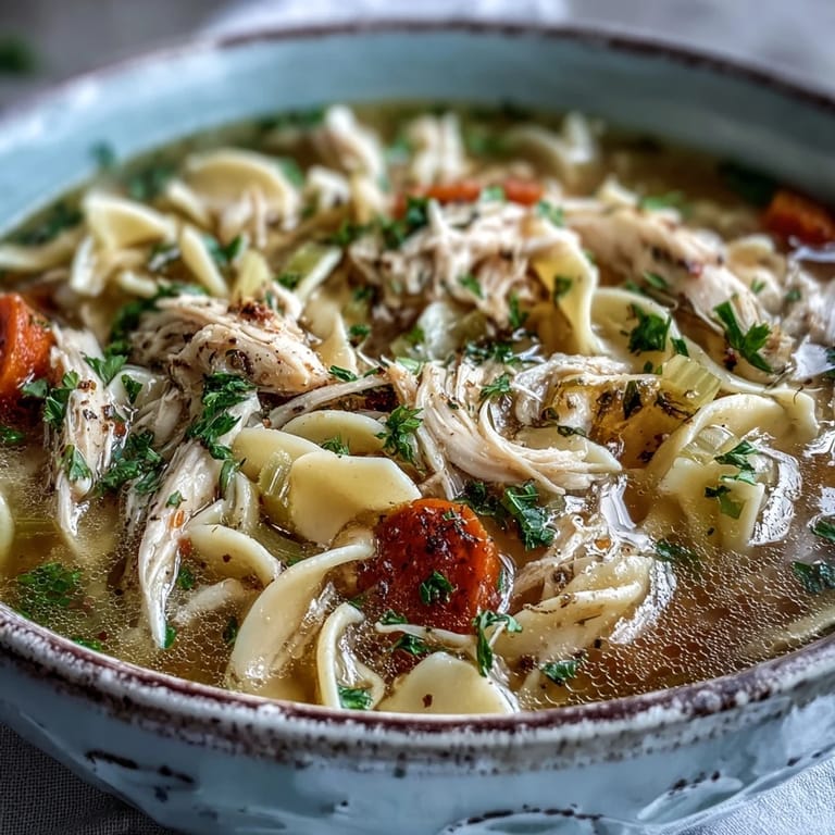 Save My neighbor brought over a pot of chicken and noodle soup on a particularly gray Tuesday, the kind of day where the kitchen felt too quiet and my fridge looked equally uninspired. One spoonful and I understood why people write songs about comfort food—it wasn't fancy or complicated, just honest and warm in a way that made everything feel manageable again. I spent the next week recreating it, tweaking ratios and learning that the secret was patience, not technique. Now whenever someone needs feeding, this is what I make, because it works every single time.