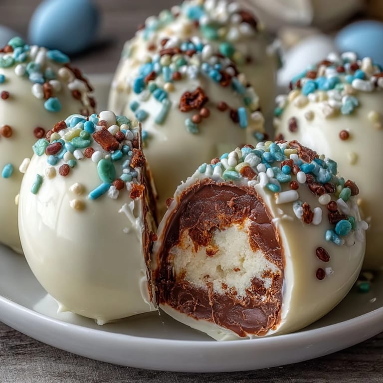 Save If you’ve ever wondered how white chocolate and peanut butter could possibly be improved, just add sprinkles—especially with the kitchen full of laughter and music on a spring afternoon. I remember once realizing I’d forgotten to buy pastel sprinkles, so we went wild with rainbow confetti instead, and honestly, the effect was even more charming. The vanilla’s warmth mingled with the sweetness as we shaped each egg, making the process unexpectedly meditative. These homemade Easter treats have a way of turning ordinary moments into small celebrations. It’s a recipe that quietly invites hands of all ages into the fun.